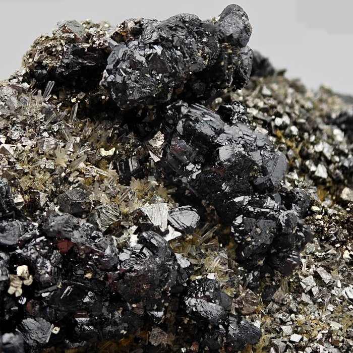 Fantástico cúmulo rico en cristales de cuarzo, con magnífica cristalización de pirita y esfalerita negra. Increíble contraste de colores, brillo y valor estético. Este ejemplar se caracteriza por una excelente formación de cristales que permite apreciar las formas de las caras de los cristales. Los cristales cultivados de forma natural, de forma excelente, tienen colores intensos. Un pedazo único de la naturaleza, ideal para enriquecer colecciones mineralógicas de alto nivel y perfecto para d…