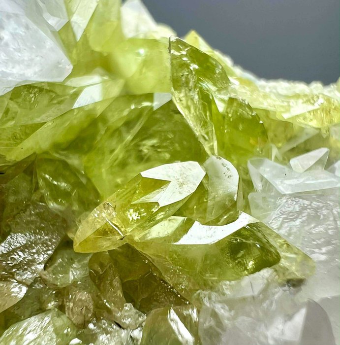 - Molt bells cristalls de titanita verda en raïm sobre matriu