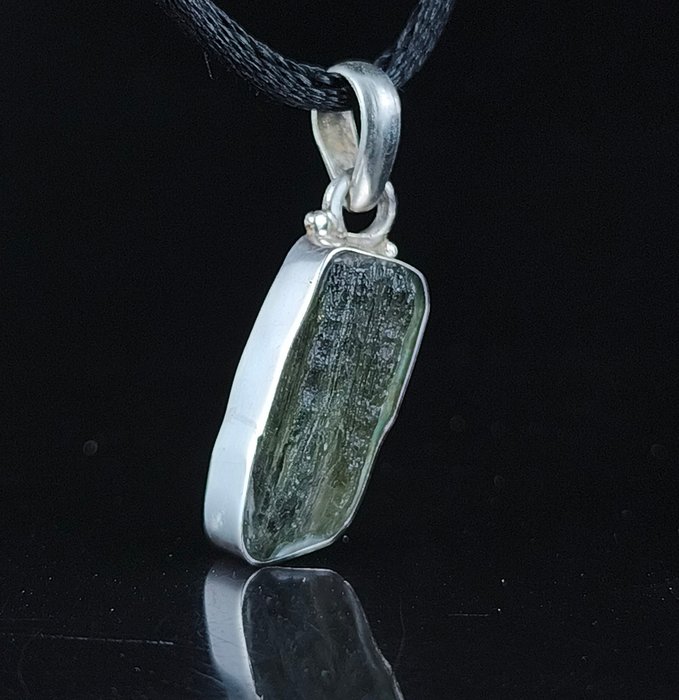 Colgante hecho en España en Plata de Ley y mineral natural de Moldavita. Colgante: * Largo: 34mm * Mineral talla fantasía 22x10mm La moldavita es una tectita de alta vibración formada por el impacto de un meteorito, reconocida en el esoterismo como una poderosa piedra de transformación rápida, evolución espiritual y conexión cósmica. Se utiliza para acelerar el crecimiento personal, liberar bloqueos emocionales y potenciar la intuición.